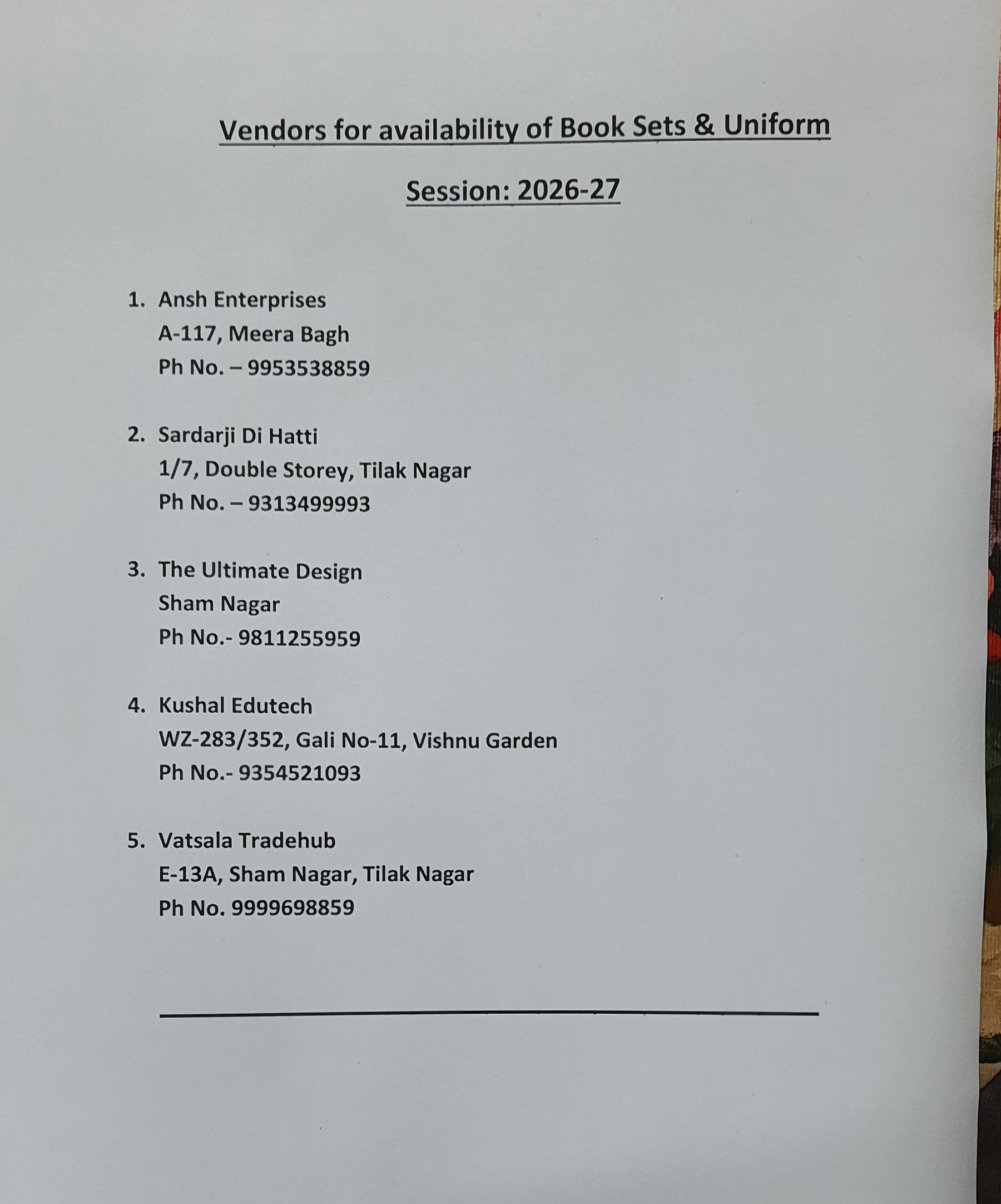 Vendor List